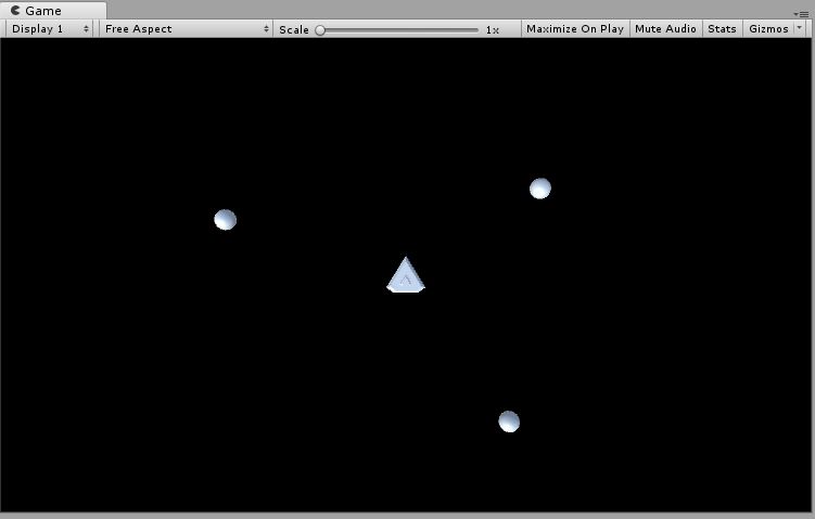 Lets duplicate the asteroid object so that there are now 3 in the scene. To duplicate either right click on the asteroid object and select duplicate or drag the prefab from the prefabs folder until there are 3 in the scene.